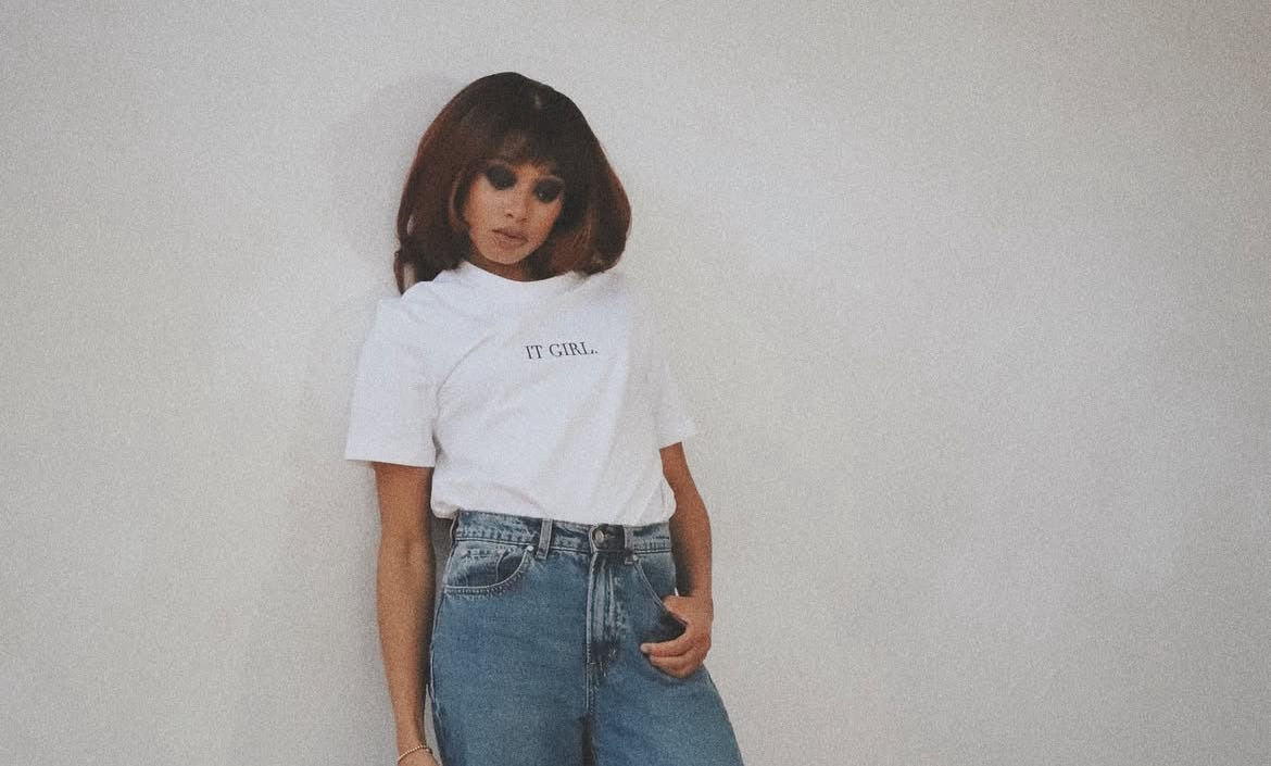 The first outfit was her “IT GIRL.” tee shirt. The garment is everything you’d want in a tee shirt. It’s opaque, a comfortable fabric, a perfect length, and my favourite part — the writing is embroidered! You may be thinking, “but it’s just a tee shirt?” It isn’t. This is something that will last a long time. It’s a staple. It’s a timeless, luxury item that clearly took time to make considering every detail was thought of.